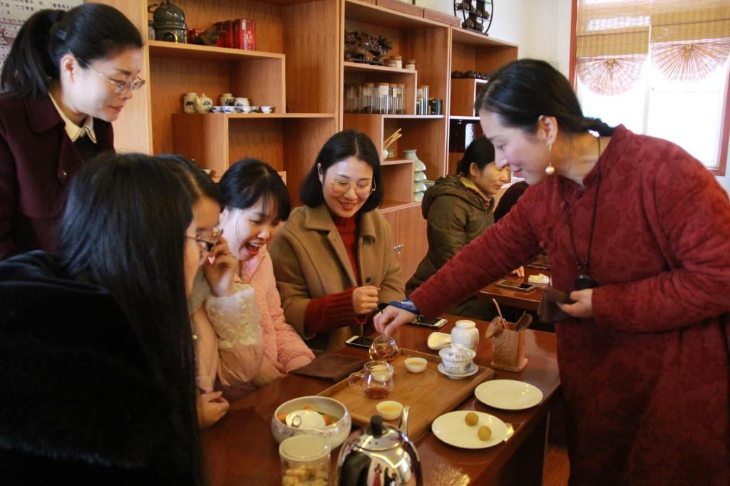 3月7日中午,校妇委会、女职委在教学楼3506茶艺室举办了茶艺培训活动,李琼老师讲述了茶道的要义和茶艺表演的精髓,现场传授盖碗茶的冲泡方法,具体讲解了翻杯、洗杯、注水、凉汤、赏茶、投茶、泡茶、出茶、敬茶等一整套流程的指法和动作要领。古朴的茶具在指尖舞动出诱人的茶趣,茶香氤氲,沁人心脾。(金巧娟)
