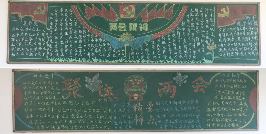 4月初,在以“学习两会精神”为主题的黑板报评比活动中,学院各班同学利用课余时间,充分发挥各自特长,协调合作完成了在众多优秀作品。