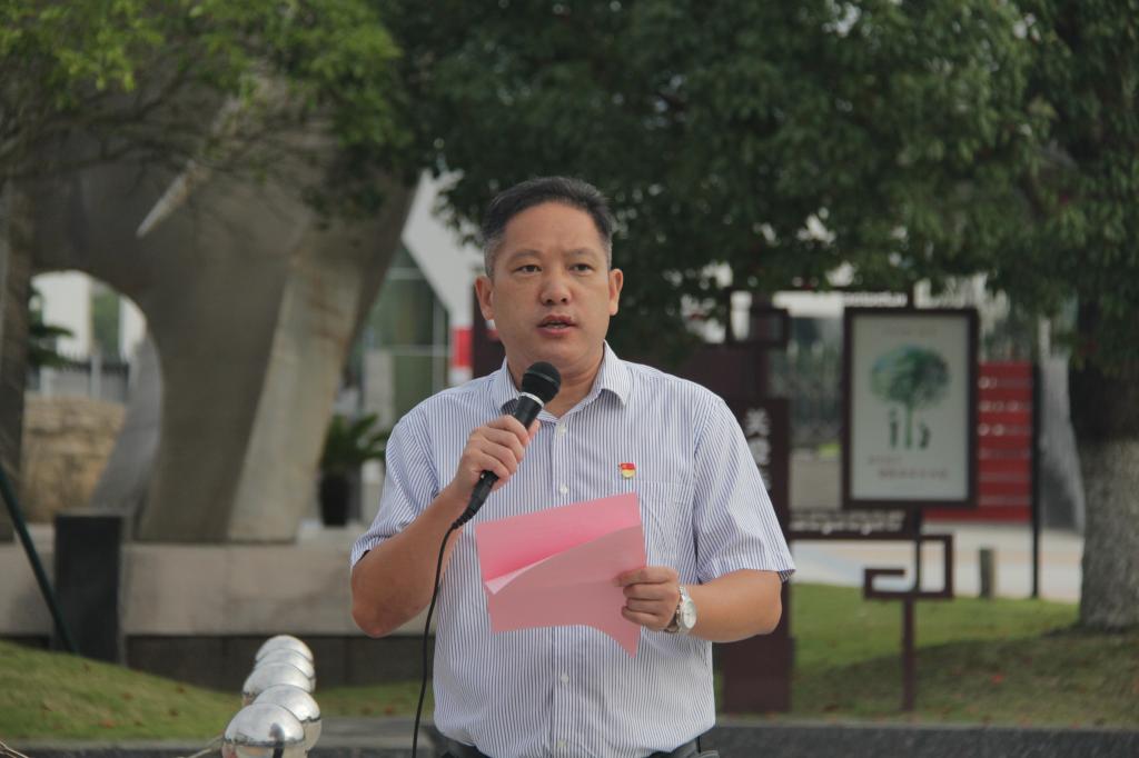 校党委委员、副校长曹志斌作国旗下讲话,他说,“70年来,共产党人坚定履行着‘不忘为人民谋幸福的初心、牢记为民族谋复兴的使命’的诺言。今天,全党上下正在举行“不忘初心 牢记使命”主题教育,是要再一次唤起共产党人的初心,唤醒共产党人的使命。让我们用知识和汗水,以满腔热情,拥抱新的希望;用崛起的跨世纪宣言,迎来全世界艳羡的目光;用我们的青春和力量一起为中华民族伟大复兴的中国梦添砖加瓦!”