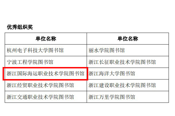 芳菲春日,书香醉人。在第二十届书香海韵读者服务月活动中,我校学子参与“哪吒同行·阅动三界”线上有奖阅读活动暨浙江省高校图书馆智慧阅读闯关赛喜获佳绩。其中任禹宇、李晓艳荣获三等奖,俞旗、夏晶、张晨燕、徐东荣获四等奖,林伊静、严若惜等11人荣获五等奖,同时,我校图书馆在此项活动中荣获“优秀组织奖”荣誉称号。