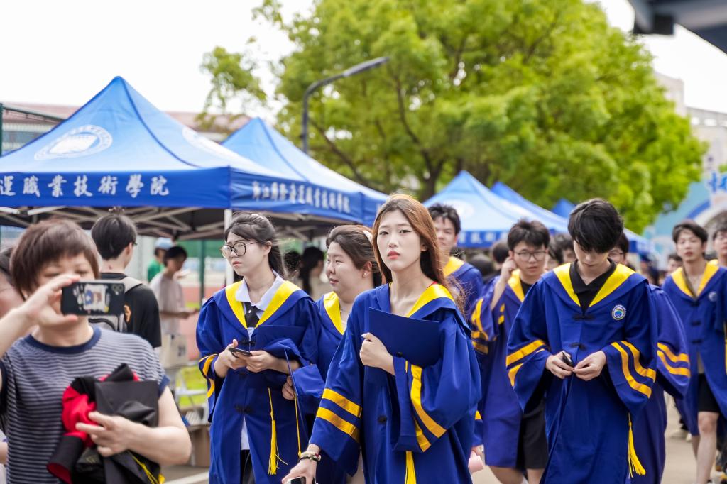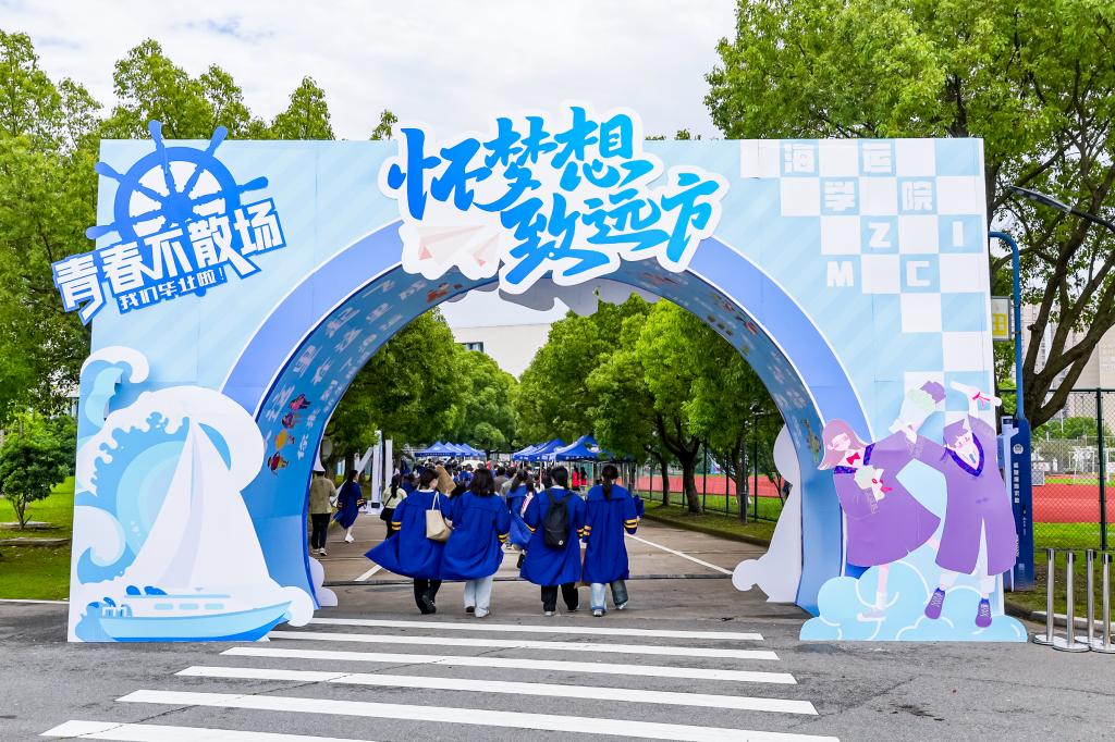 场馆外,学校精心打造的毕业小镇成为亮点,设有海运主题元素的背景墙和专业特色展示体验区,毕业生们纷纷在此合影,定格珍贵瞬间。