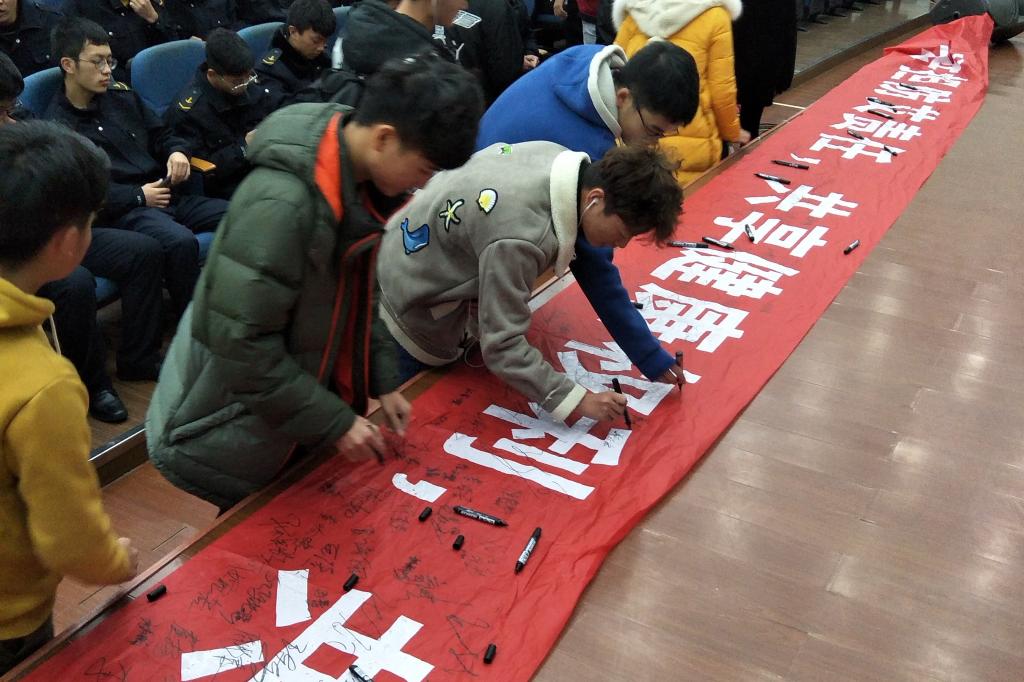 数百名同学在“共担防艾责任,共享健康权利,共建健康中国”的宣传主题横幅上踊跃签名。