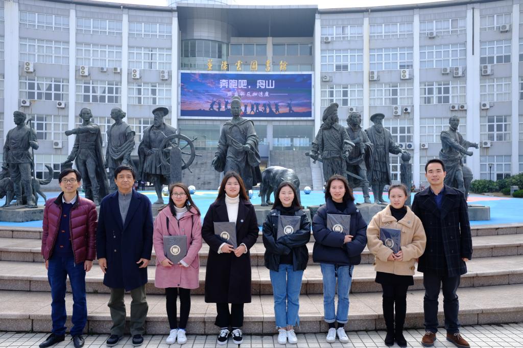 交流生们离校前,港口管理学院召开了座谈会,并组织了简短而隆重的欢送仪式。港口管理学院院长周剑敏表达了我校师生对交流生学习情况的认可,希望同学们将海运经验带到浙交院,向身边的同学传播,促进两校学生共同进步,共同提升。周院长向交流生赠送了学院笔记本,港口管理学院苏峰向交流生赠送并佩戴我校校徽。最后,学院行政班子和全体交流生合影留念。(傅红波)