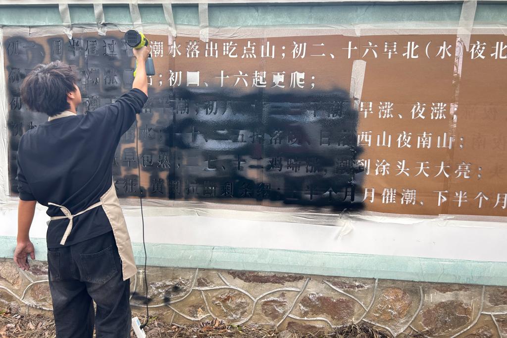 同学们通过构型、上色、细节处理,字体喷绘,围绕虾、蟹、渔船、捕捞作业等海洋特色元素和场景,运用所学专业技能进行创意设计和喷绘,让原本空白的墙壁充满“海味”,实现了“一墙一风景”“一墙一文化”。