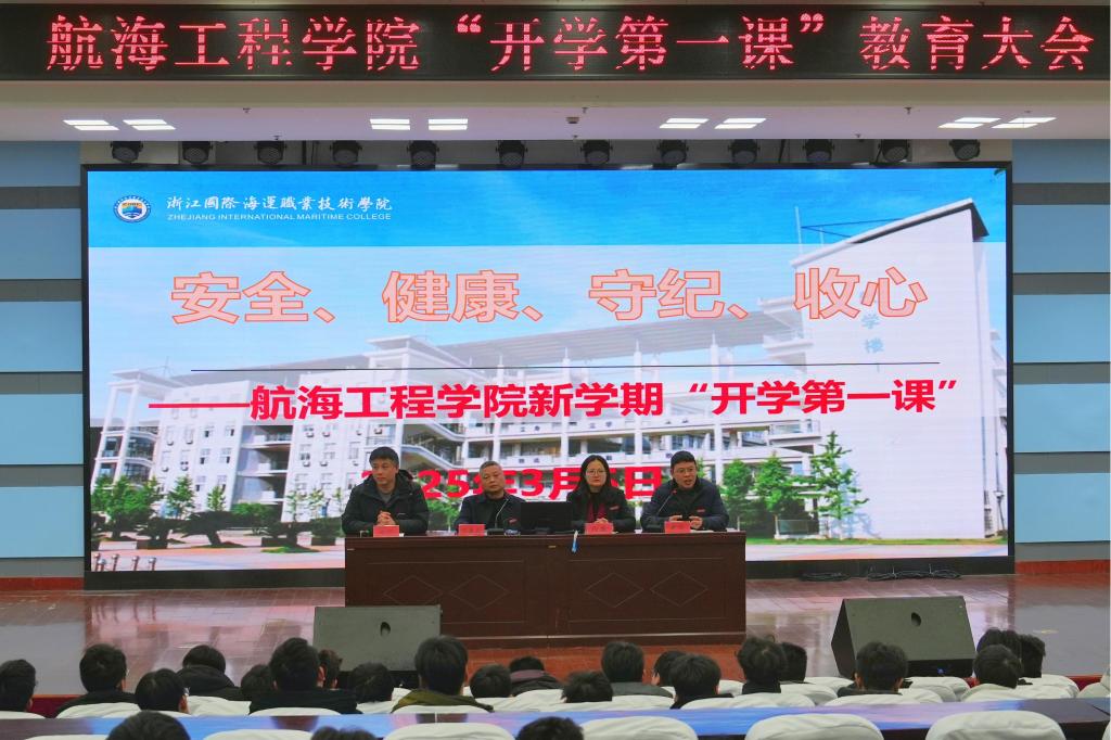 3月5日,航海工程学院在图书馆四楼报告厅举行了以“安全、健康、守纪、收心”为主题的“开学第一课”教育大会。学院院长汪益兵、党总支书记徐盈、副院长黄华、全体辅导员与全体在校生参与此次大会,大会由综合办主任姜波主持。
