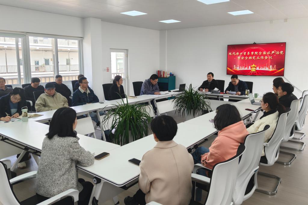 为认真贯彻落实学校党委全面从严治党和安全稳定工作会议精神,4月2日,现代港口贸易学院在海德楼4304会议室举行全面从严治党暨安全稳定工作会议,学院全体教职工参加,会议由学院党总支书记李刚主持。