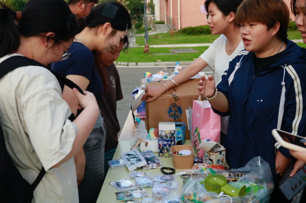 此次活动吸引了74名“商家”热情参与,共设有20个摊位。活动现场人头攒动、热闹非凡,各类物品琳琅满目,涵盖学习资料、生活用品、电子产品配件等。同学们穿梭其中,认真挑选心仪之物,讨价还价声此起彼伏,交易氛围浓厚。