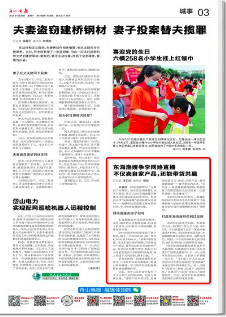《学习强国(浙江学习平台)》/《舟山晚报》:东海渔嫂争学网络直播不仅卖自家产品,还能带货共赢