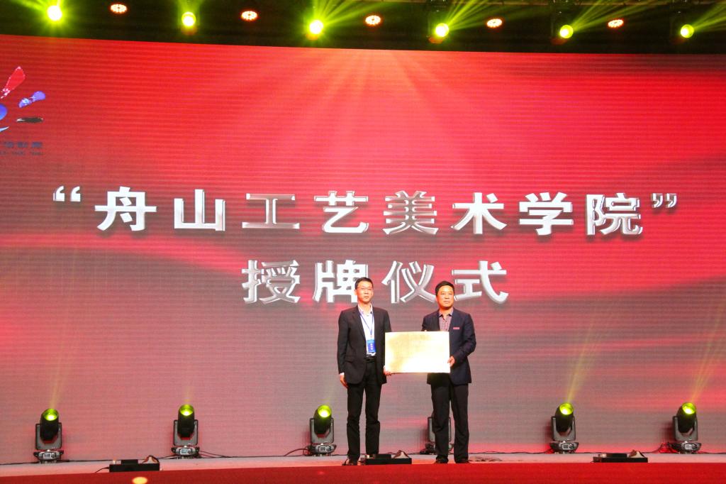 仪式现场,浙海职院与市经济和信息化局深化校地合作,共建舟山工艺美术学院;与舟山技师学院开展中高职一体化专业“职技融合”人才培养试点,并共同为“智能装备学院”授牌。