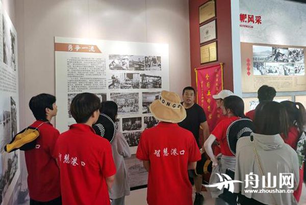在创业展览室,学生们聆听杨晓建老师结合现场图片展,讲述蚂蚁岛渔业合作经济史中蕴含的经济学原理,创业动机和激励机制,积累与消费的关系等理论与实践,深化蚂蚁岛创业历史的理性认识。