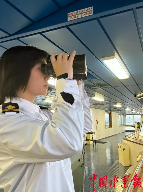然而,航海之路对于女性而言并非一帆风顺。传统观念的束缚、身体条件的挑战以及行业内男性占主导的环境,都成为她前行道路上的重重障碍。2023年毕业前,她顺利考取无限航区三副适任证书,并成功入职法国达飞海运集团。在大型集装箱船实习期间,她遭遇了很多质疑的目光。一些船员对她的能力表示怀疑,认为女性在体力和应对紧急情况时可能会有所欠缺。但她并没有因此而气馁,反而更加努力地证明自己。在一次次船舶靠离泊作业中,她在操作过程中精准地执行指令,出色地完成了任务,赢得了船长和同事们的认可。
