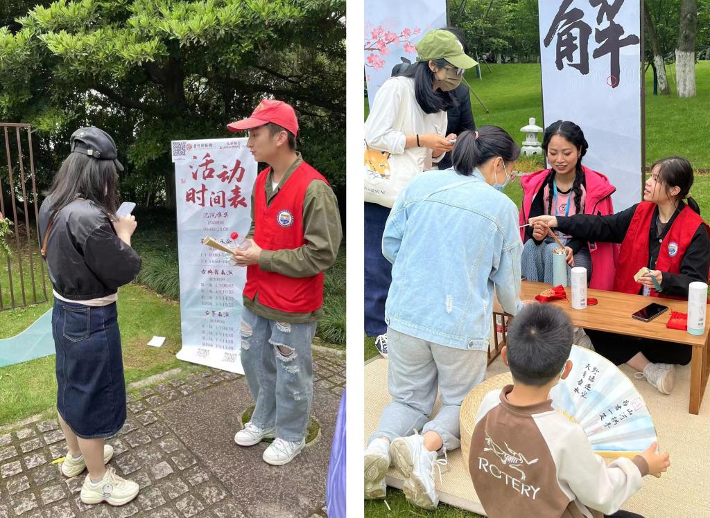 活动中,“小叶子”们各自分工,有的在文创展位为游客讲解非遗文化,有的在食品展位为游客提供小食,有的在集章游园活动中为游客盖章打卡,有的在活动演出场馆维持现场秩序,处处都能看见他们忙碌的身影。