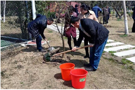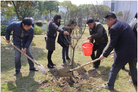 活动开始后,大家三五成群分工合作,有人负责挖坑,有人负责栽树,有人负责浇水,过程井然有序,气氛热烈活跃,虽然脚上、裤腿上都沾满了泥巴,但劳动的快乐绽放在幸福的脸上,看着一棵棵刚栽下的树苗焕发着新的生机,大家沉浸在鲜绿的愉悦之中,默默祝愿这些树苗可以茁壮成长,为我校增添新的风景。