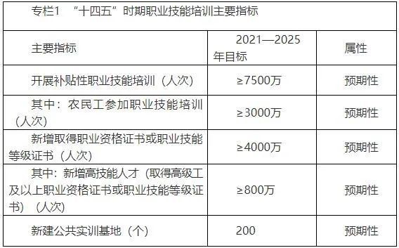 ——终身职业技能培训制度更加完善。深入实施职业技能提升行动,形成贯穿劳动者学习工作终身,覆盖劳动者职业生涯全程,适应就业创业和人才成长需要以及经济社会发展需求的终身职业技能培训制度,推进终身职业技能培训组织实施。