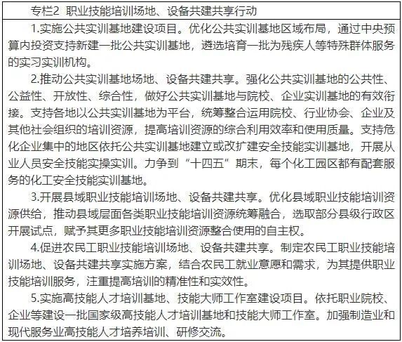 ——坚持共建共享、协同发力。加强对职业技能培训资源的统筹利用,发挥公共实训基地和职业院校(含技工院校,下同)等功能作用,鼓励支持龙头企业、社会资源依法参与职业技能培训,推动共建共享,形成工作合力。