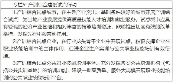 开展产训结合建设试点行动,促进产业链和职业技能培训链有效衔接。立足促进区域经济发展,服务产业发展需求和企业生产需要,开展产训结合城市和企业试点,促进企业生产和培训有效衔接。鼓励行业龙头企业、大型企业建设职工培训中心,面向产业链上下游中小微企业职工开展培训,提升全产业链职业技能培训质量和效益。