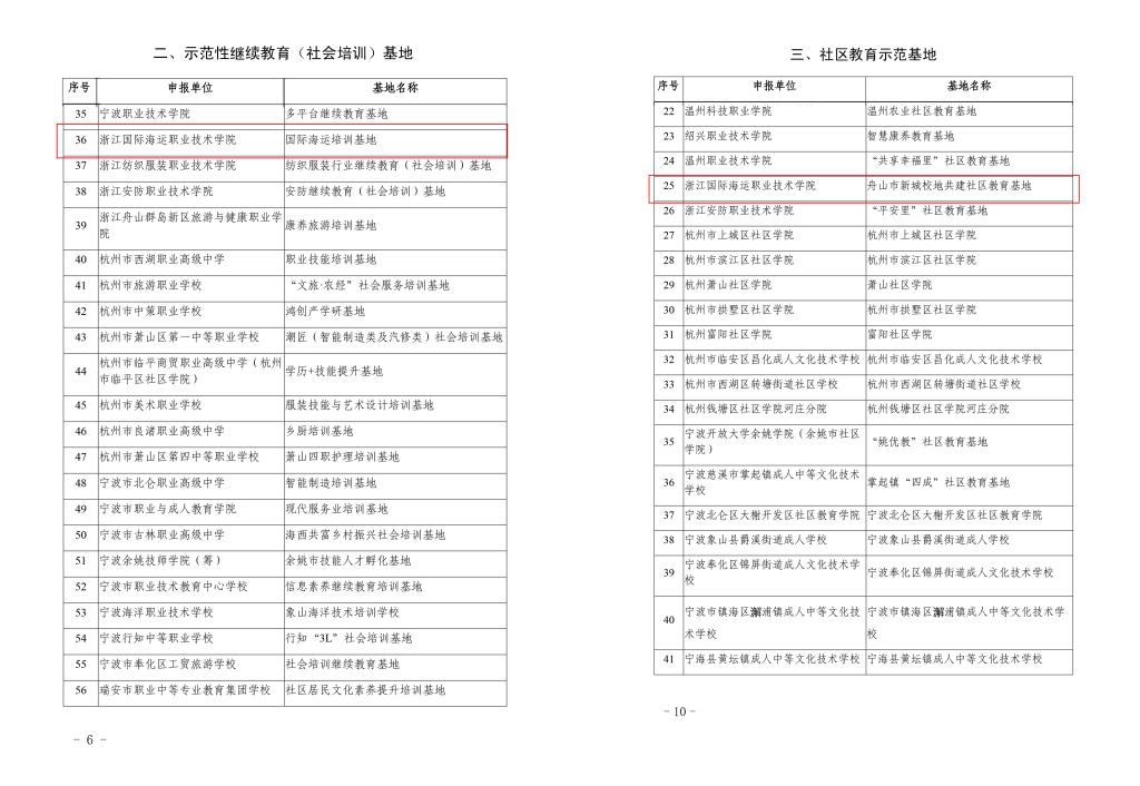 近日,浙江省教育厅发文公布了“浙江省2022年度服务终身学习相关项目名单”,我校申报的“现代航运企业职工培训基地”荣获示范性职工培训基地、“国际海运培训基地”荣获示范性继续教育(社会培训)基地、“舟山市新城校地共建社区教育基地”荣获社区教育示范基地。