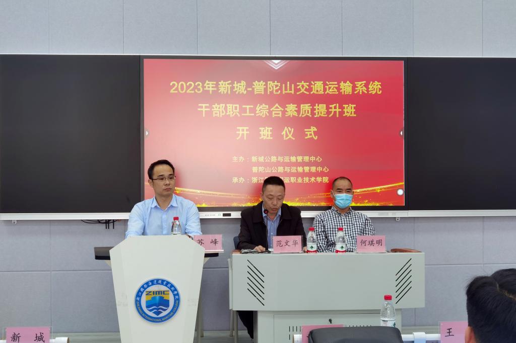 5月24日—26日,由舟山市新城公路与运输管理中心、普陀山公路与运输管理中心联合主办,东海教育学院承办的2023年新城-普陀山交通运输系统干部职工综合素质提升班在我校顺利举行。新城公路与运输管理中心党支部书记、主任范文华,普陀山公路与运输管理中心党支部书记、主任何琪明,两家单位班子成员、参训学员100余人参加开班仪式,仪式由东海教育学院院长、职业培训中心主任苏峰主持。